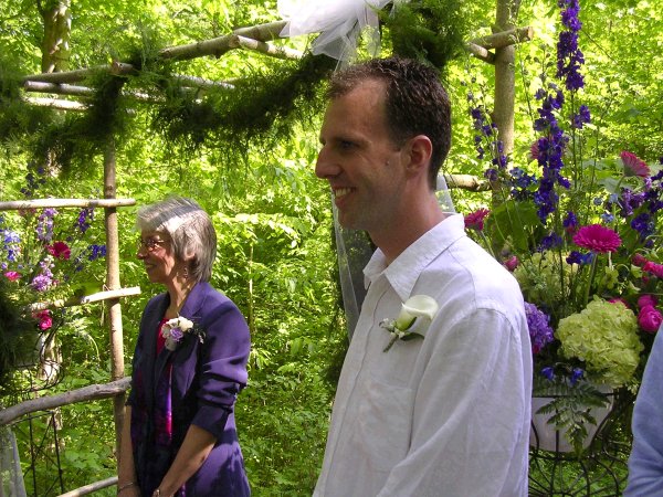 Gary is very happy as Kelley approaches the wedding arbor!