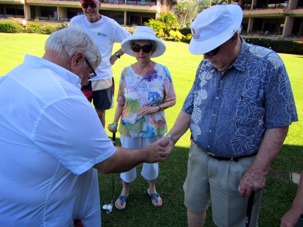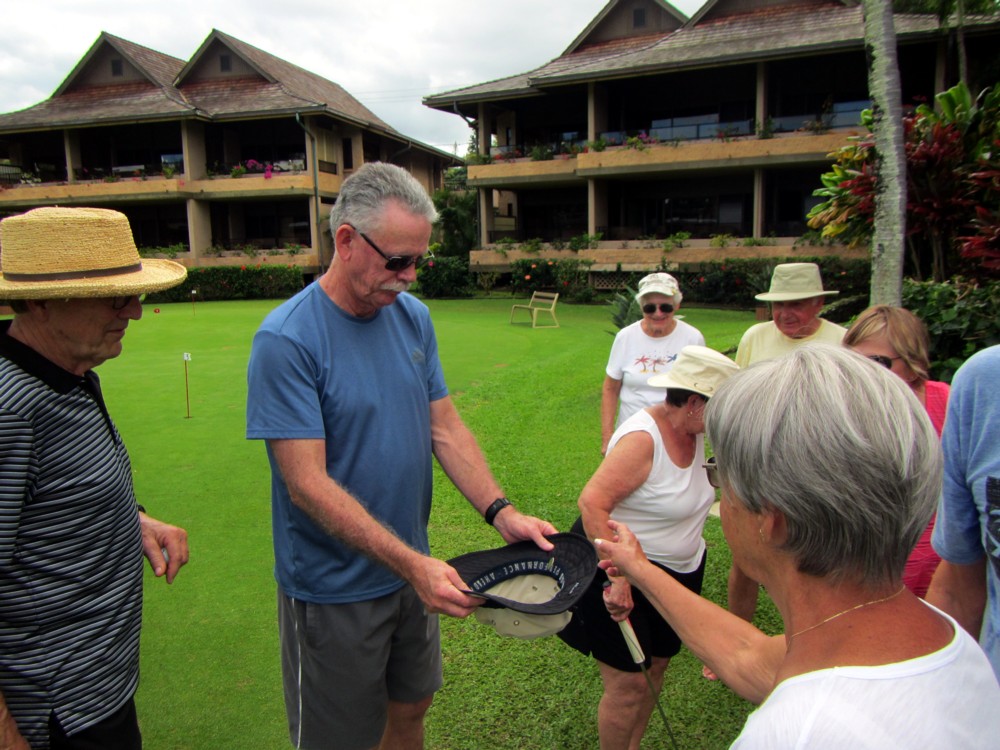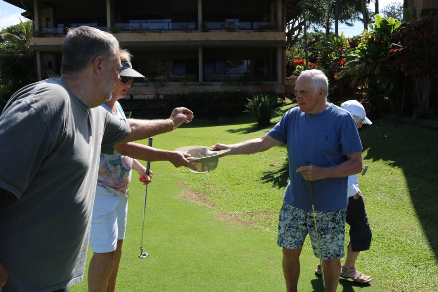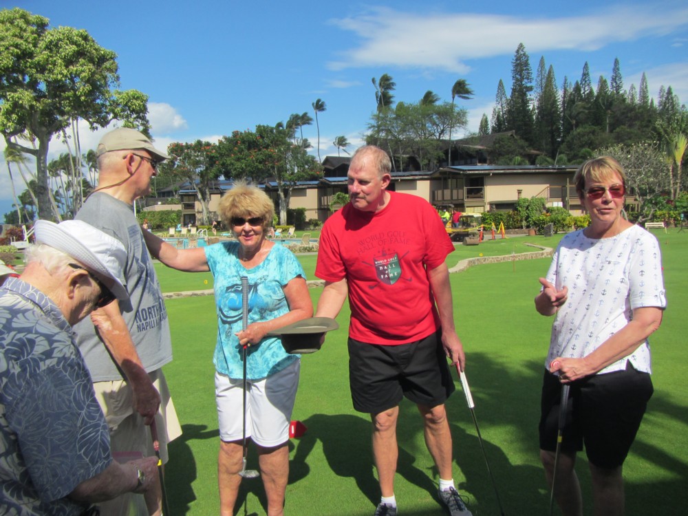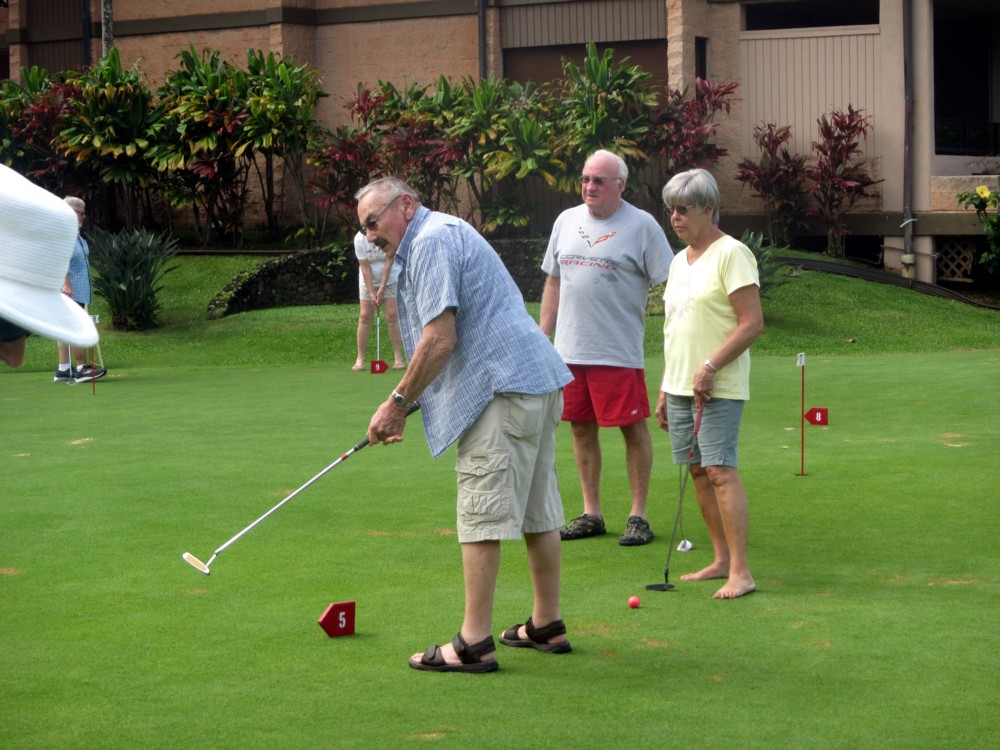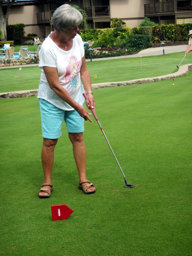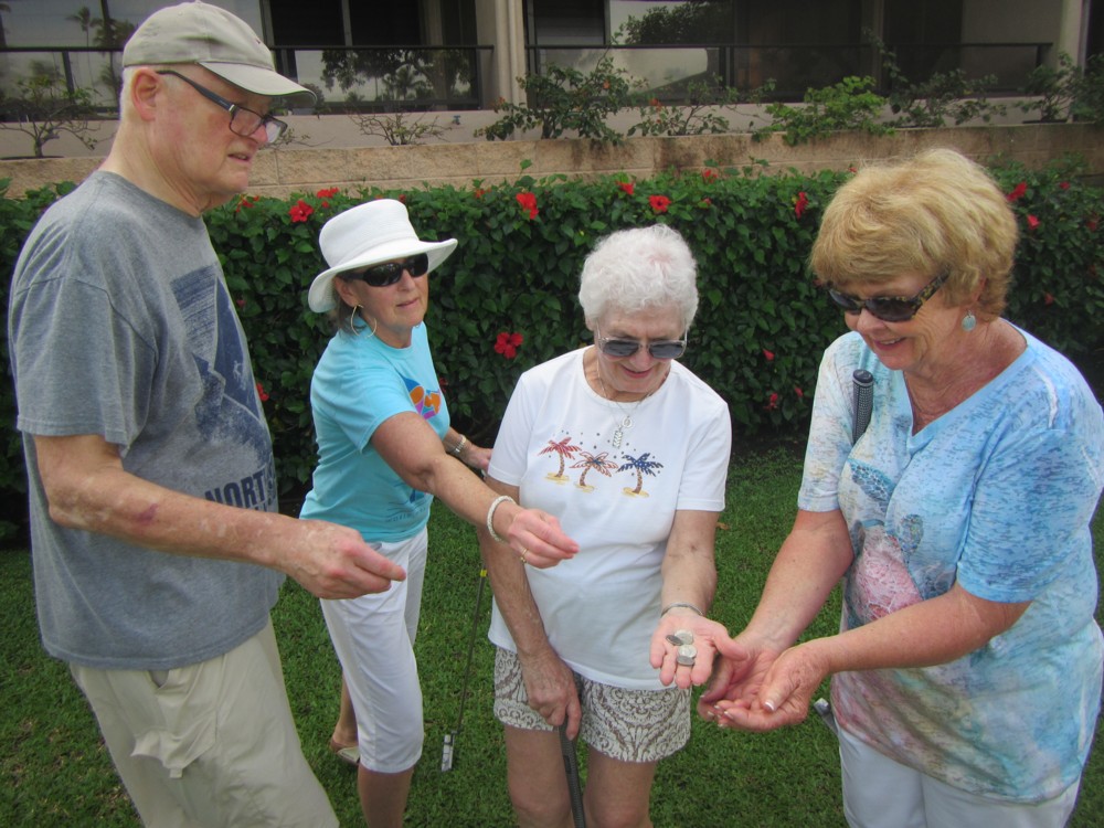 Every morning, promptly at 10:30 AM following coffee, the serious and not-so-serious putters gather at the putting green for three rounds, their pockets awash in quarters. Will it be a "push" (tie scores...no quarters due?) Or will some lucky (or possibly "skilled") trio or foursome collect quarters from everyone else?