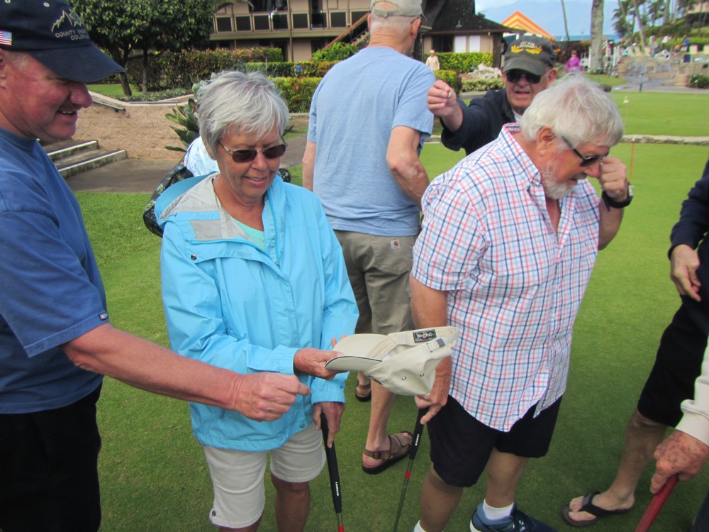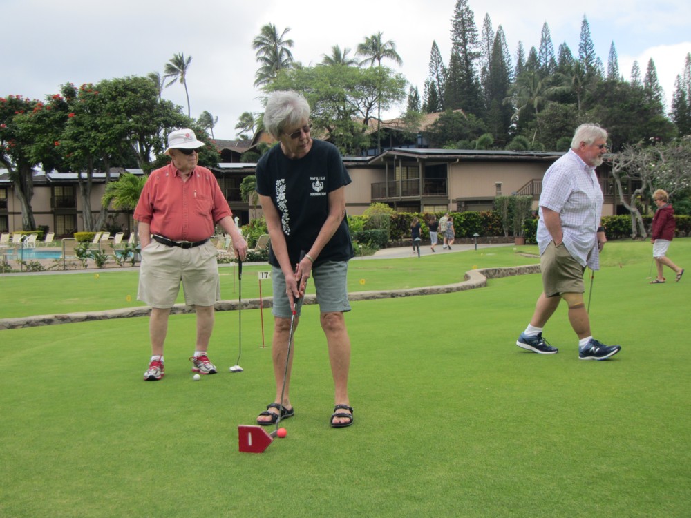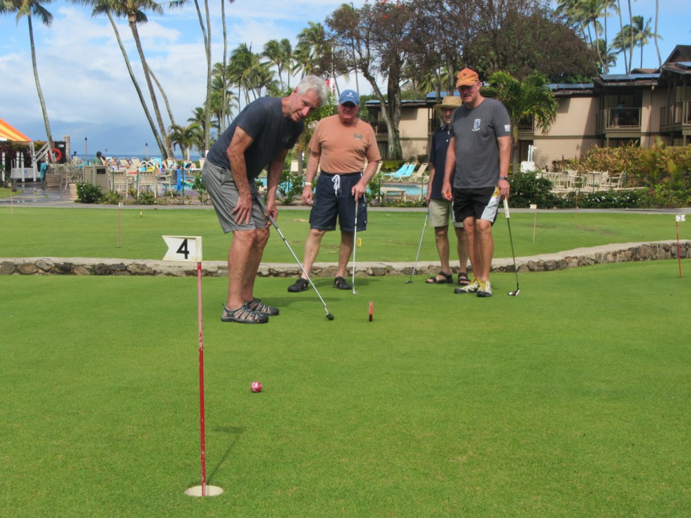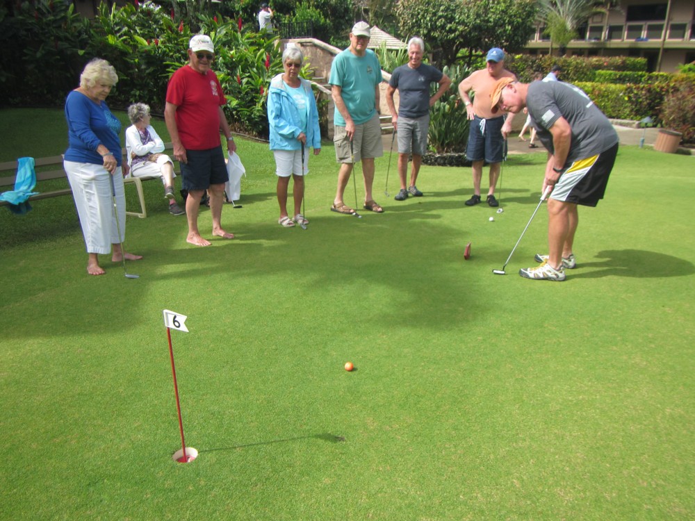 Every morning, promptly at 10:30 AM following coffee, the serious and not-so-serious putters gather at the putting green for three rounds, their pockets awash in quarters. Will it be a "push" (tie scores...no quarters due?) Or will some lucky (or possibly "skilled") trio or foursome collect quarters from everyone else?