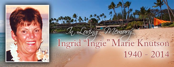 Sadly, we say goodbye to a wonderful wife, mom, grandma, sister and friend. Ingie passed away with her family by her side on Wednesday, July 9, 2014 at the age of 74.