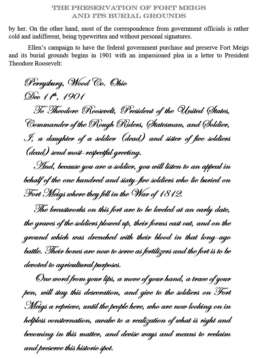 organizations and one woman, Ellen McMahan Caspers, to preserve Fort Meigs.
