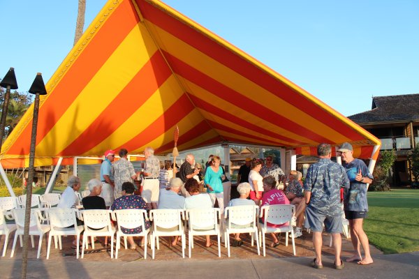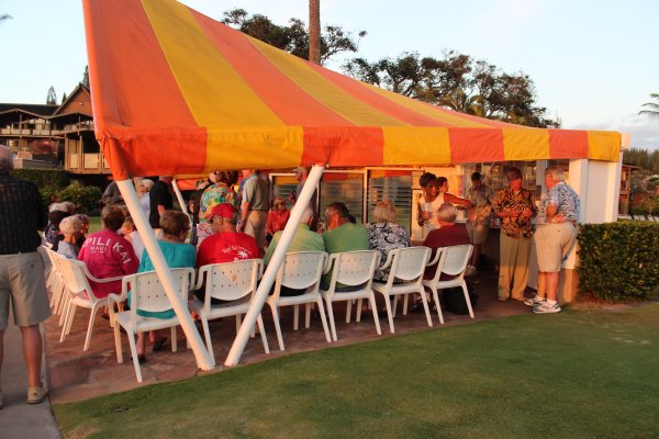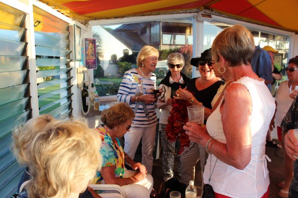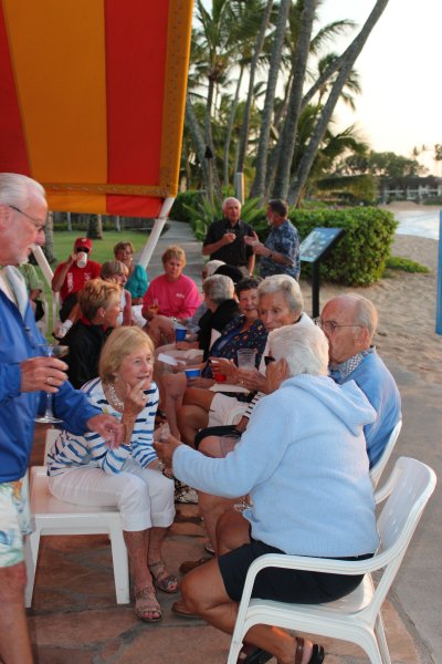 Ed & Margaret, Bob & Holli and Gary & Lori planned a small, quiet dinner for six on the beach with pizza from Dolly's...but, what happened??? Word "leaked" out and it was "Pizza for Forty-four"!