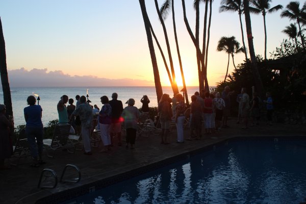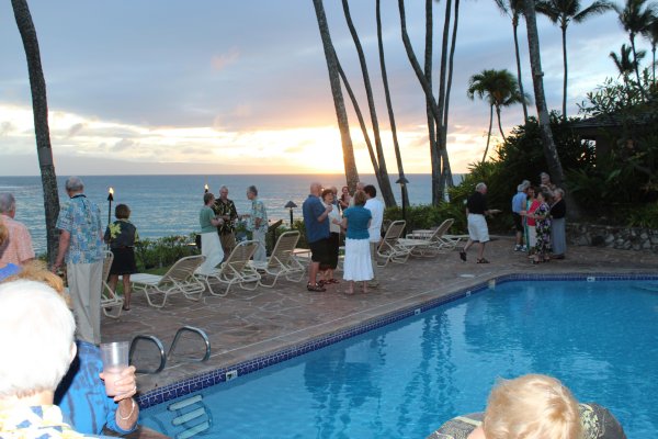 Lani Pool Deck in aloha dress for Mai Tais, wine and chat.