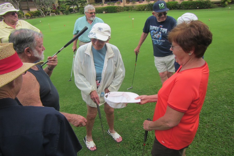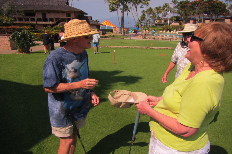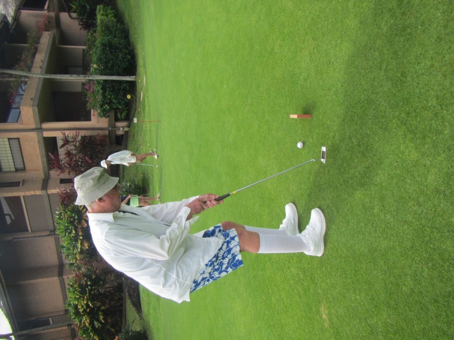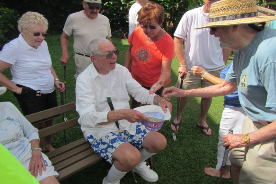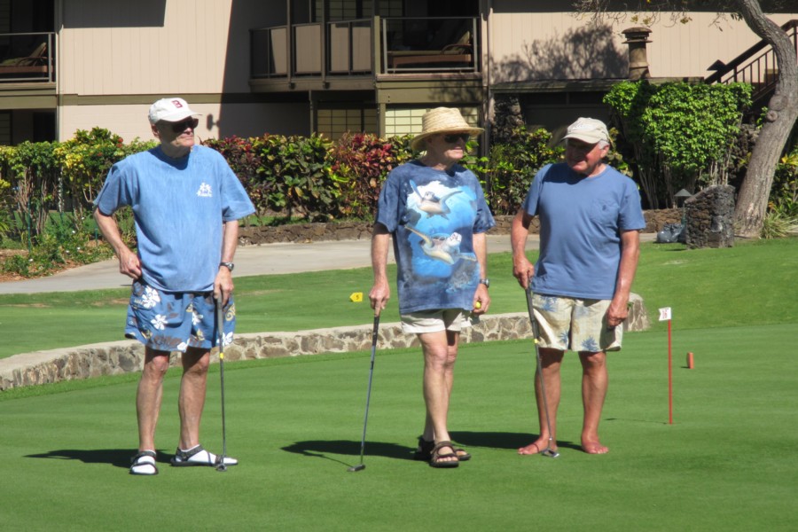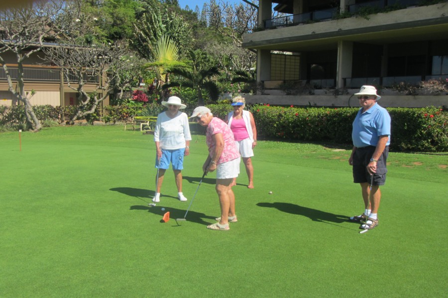Every morning, promptly at 10:30 AM following coffee, the serious and not-so-serious putters gather at the putting green for three rounds, their pockets awash in quarters. Will it be a "push" (tie scores...no quarters due?) Or will some lucky (or possibly "skilled") trio or foursome collect quarters from everyone else?