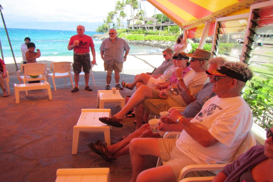 At 10:30 every morning, all gather at the seaside cabana for coffee,