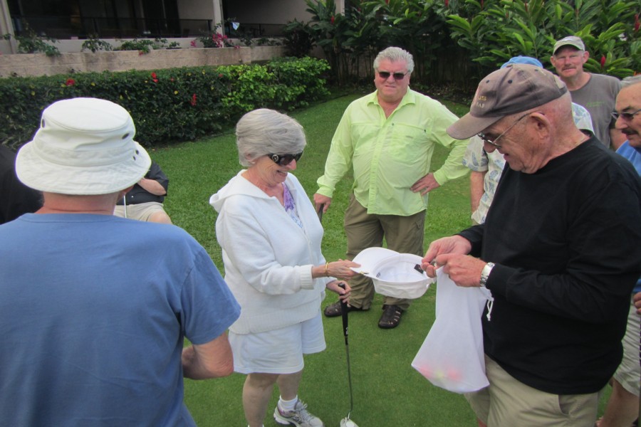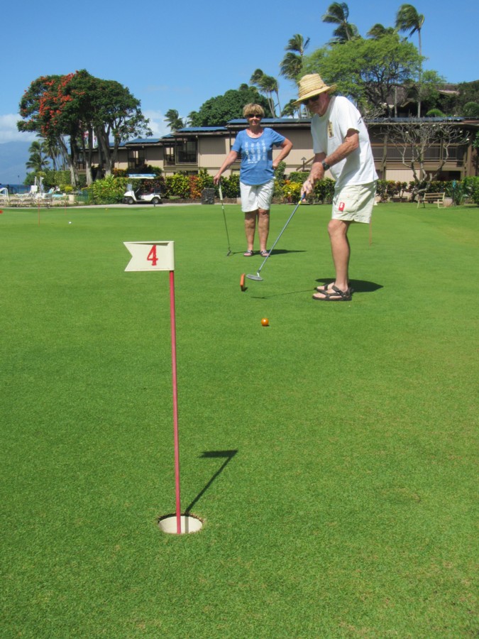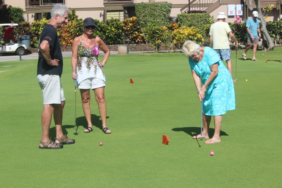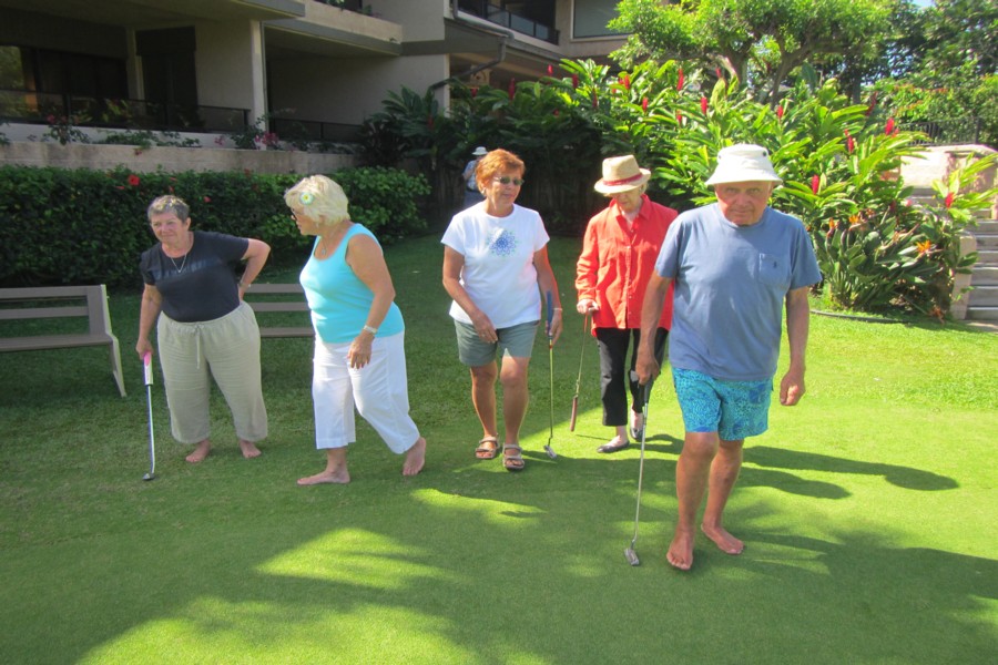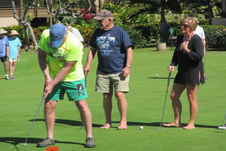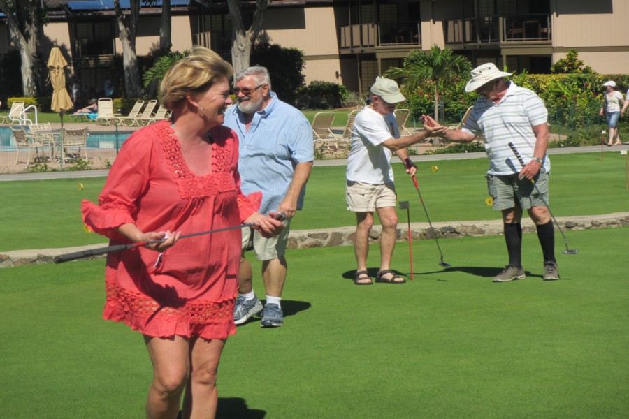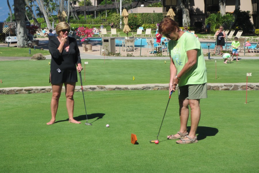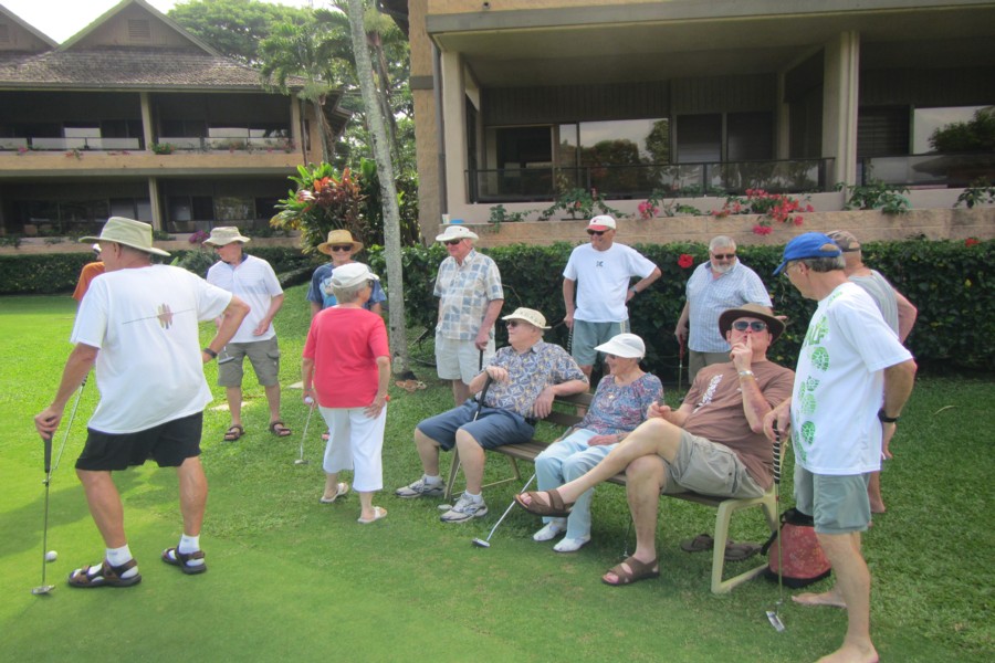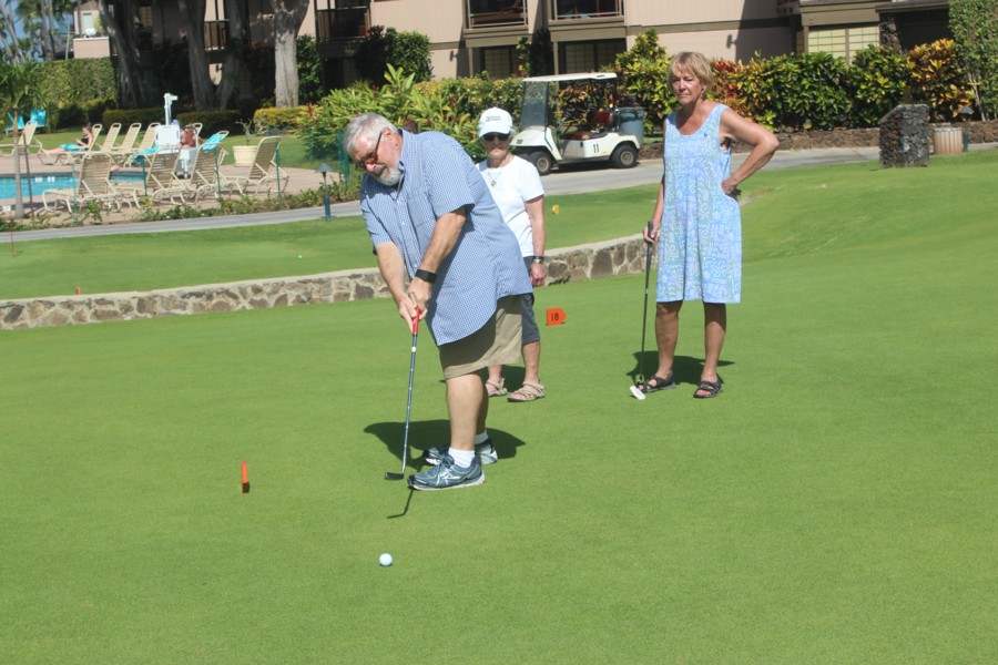 Every morning, promptly at 10:30 AM following coffee, the serious and not-so-serious putters gather at the putting green for three rounds, their pockets awash in quarters. Will it be a "push" (tie scores...no quarters due?) Or will some lucky (or possibly "skilled") trio or foursome collect quarters from everyone else?