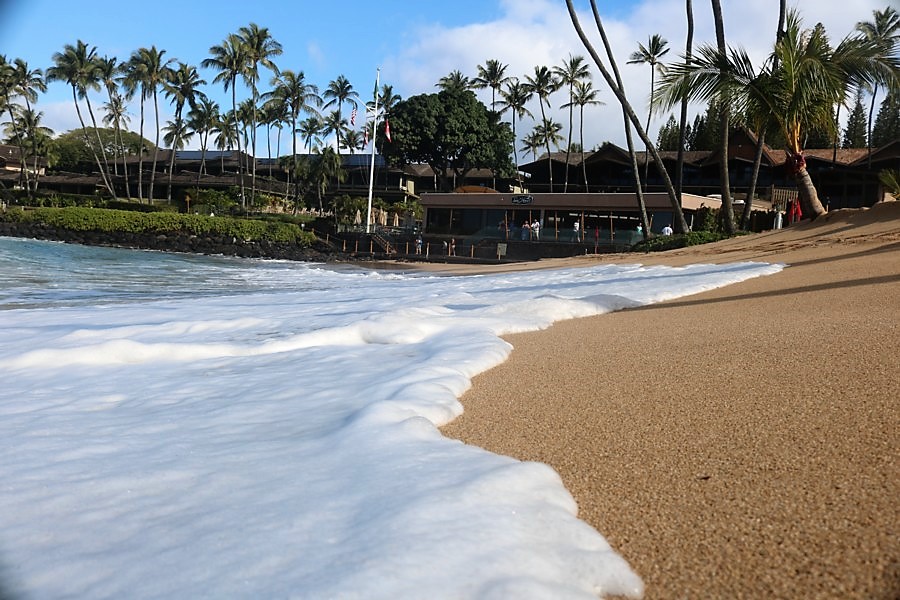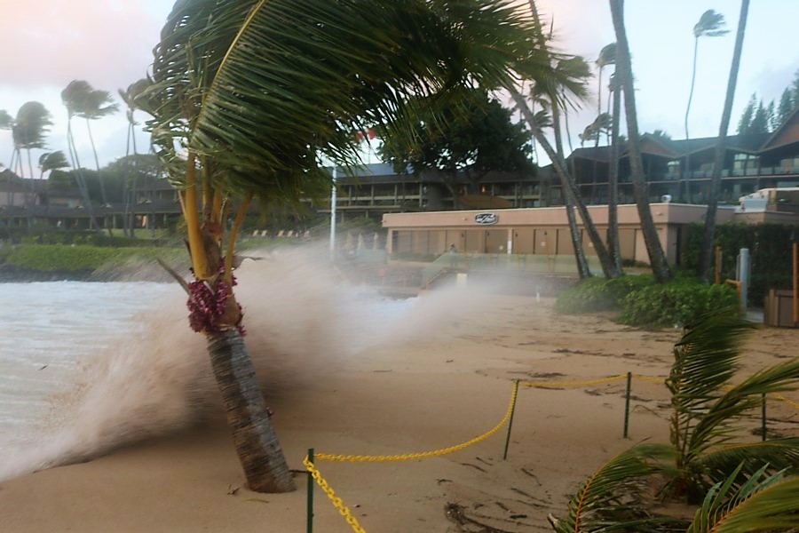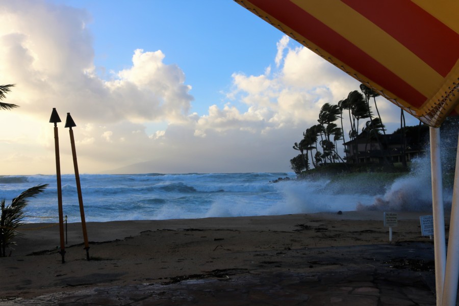 An all-day storm on February 10, 2019 sent waves crashing all the way to the pool...