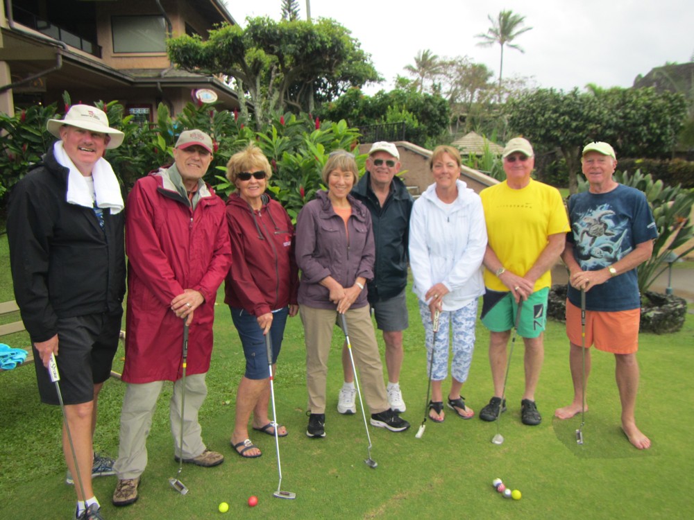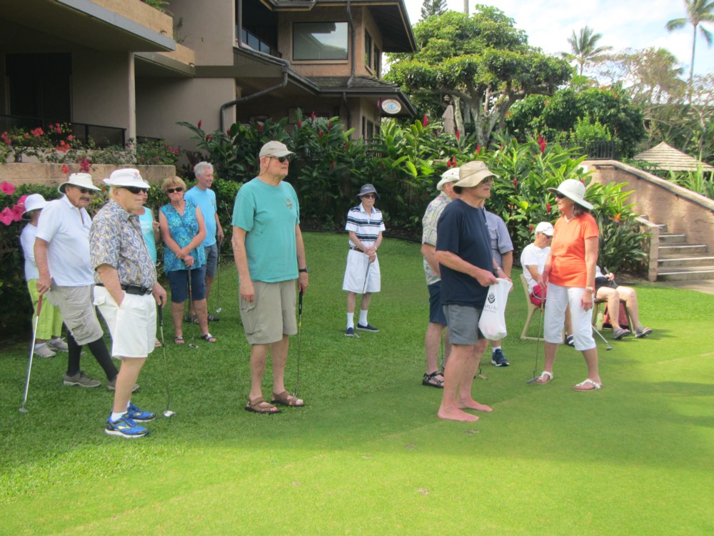 Every morning, promptly at 10:30 AM following coffee, the serious and not-so-serious putters gather at the putting green for three rounds, their pockets awash in quarters. Will it be a "push" (tie scores...no quarters due?) Or will some lucky (or possibly "skilled") trio or foursome collect quarters from everyone else?