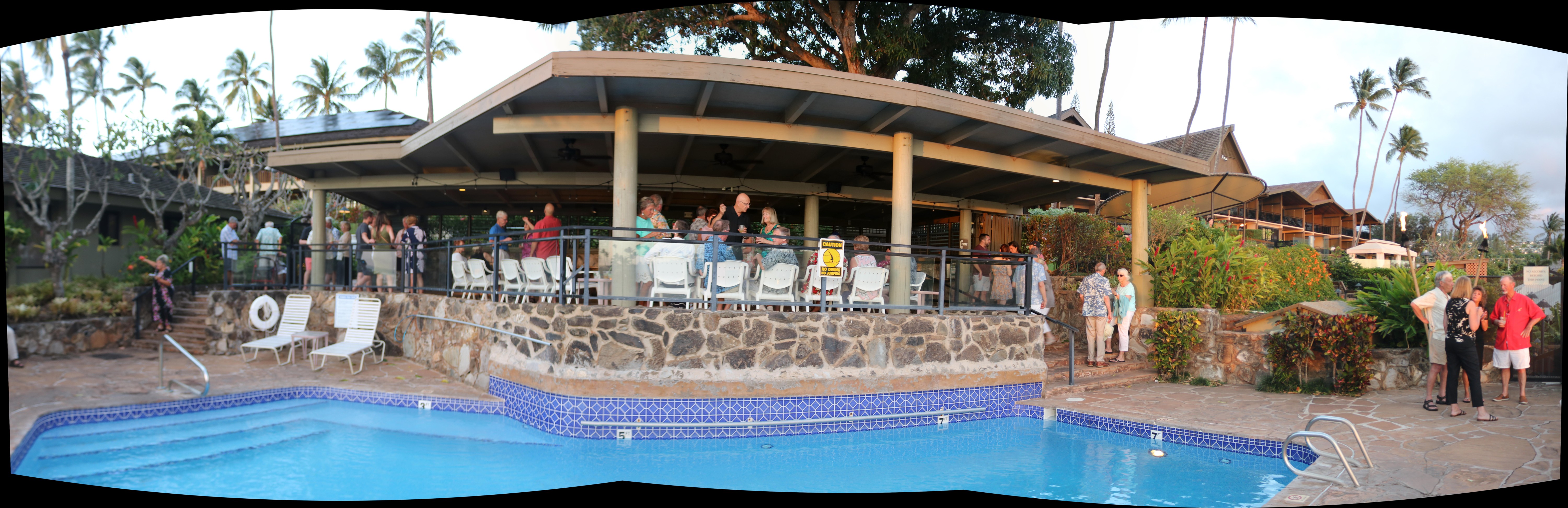 Lani Pool Deck in aloha dress for Mai Tais, wine and chat.