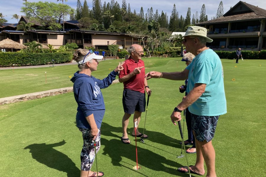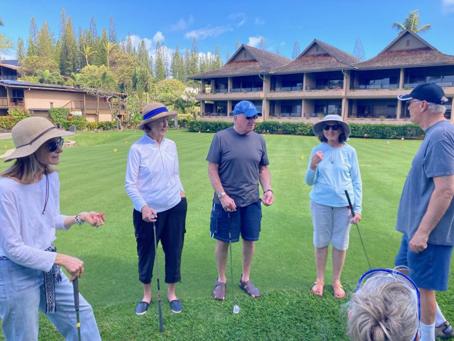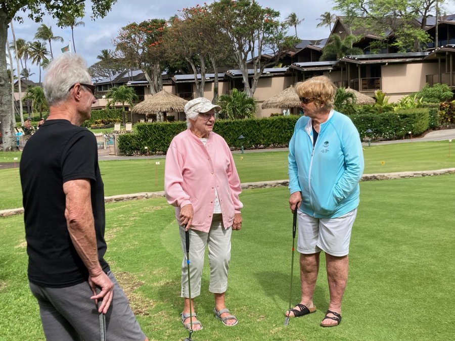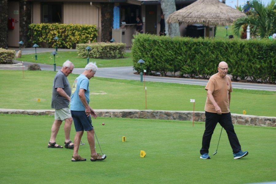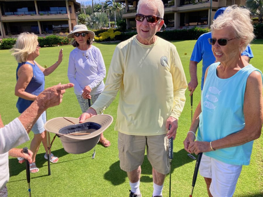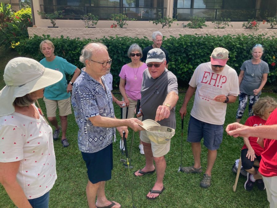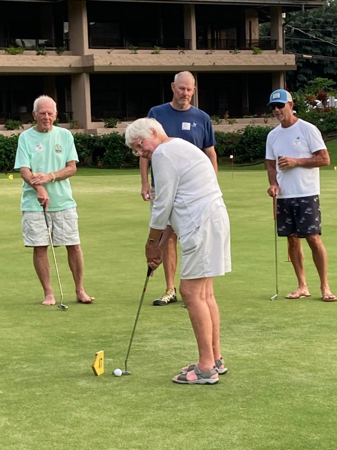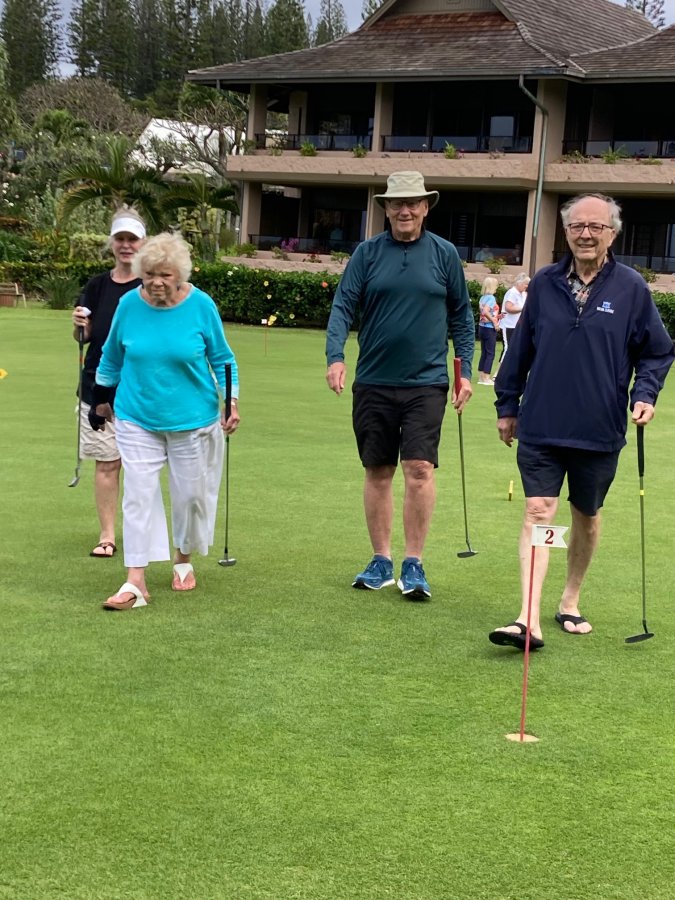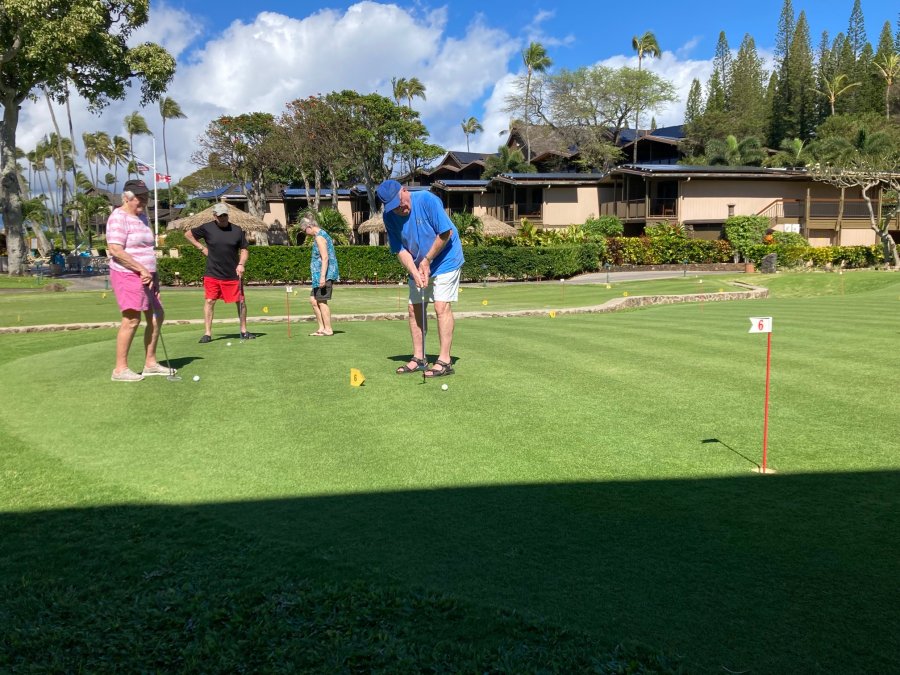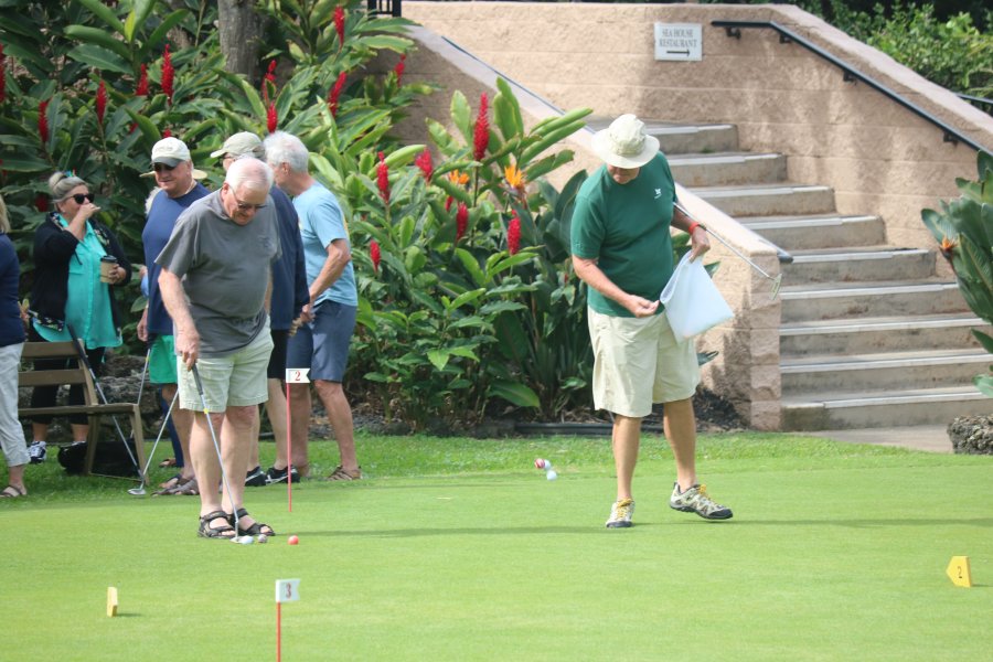 Every morning, promptly at 10:30 AM following coffee, the serious and not-so-serious putters gather at the putting green for three rounds, their pockets awash in quarters. Will it be a "push" (tie scores...no quarters due?) Or will some lucky (or possibly "skilled") trio or foursome collect quarters from everyone else?